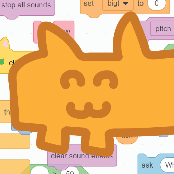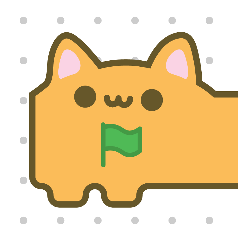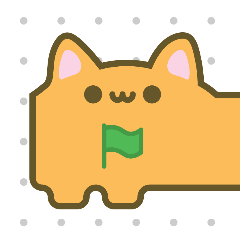 I eventually grew tired of the hand-drawn art style. I probably would have kept it longer if I had remembered about the existence of the smoothing tool... but alas my modern internet persona was born! My first iteration used the exact colors of the Scratch hat blocks. It took about 5 minutes to realize it looked terrible at small sizes, so they were immediately changed to the match the following image.